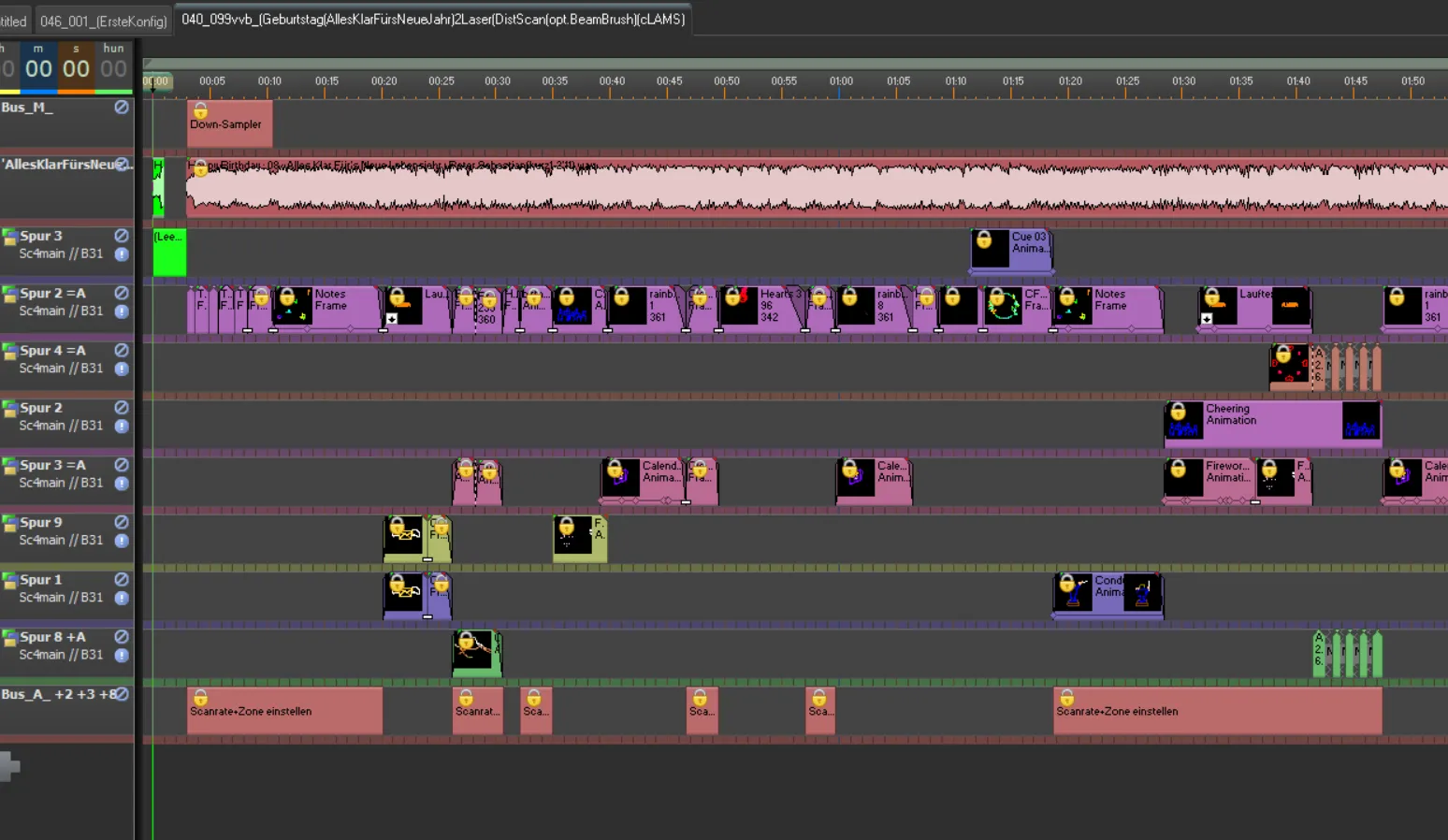 8 Timeline Spuren für 2 Laser, teilweise im Verbund (Distribute Scanning)